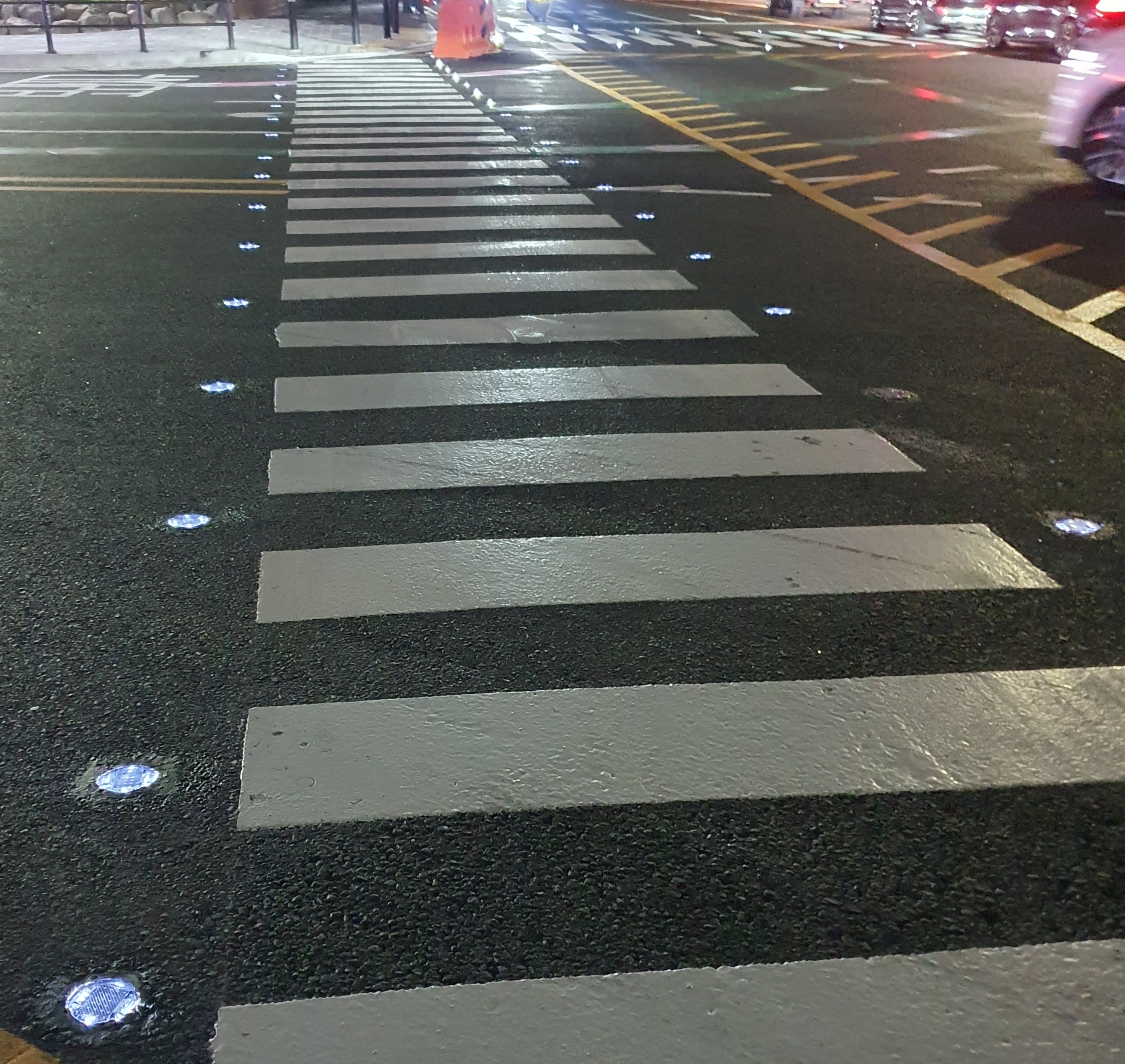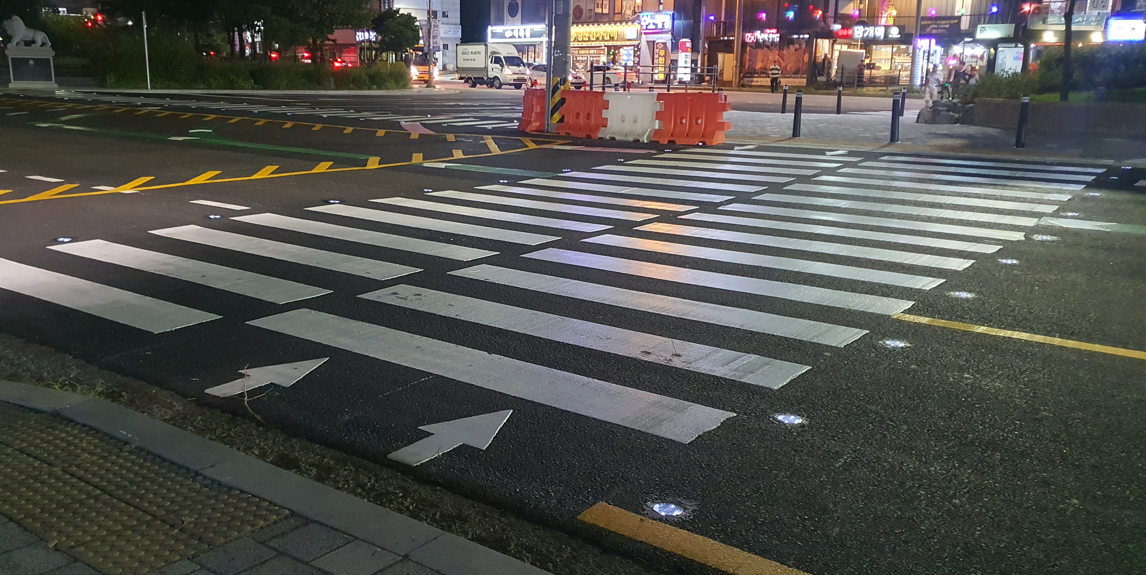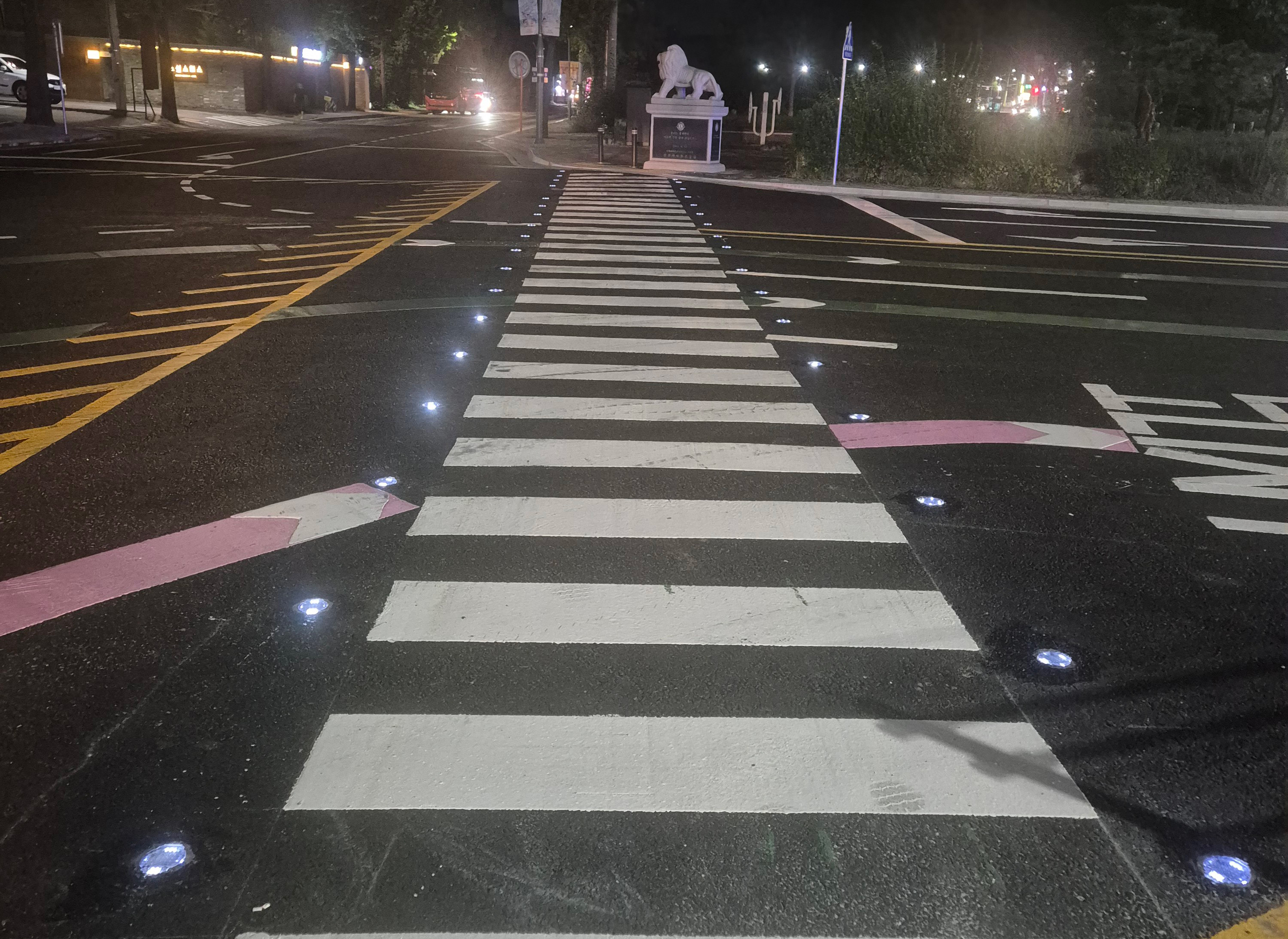 한국 민속촌 횡단보도에 태양광 도로 표지병 설치